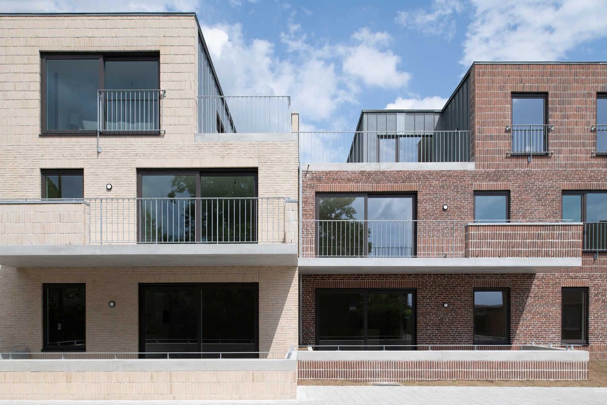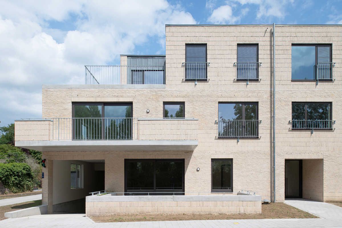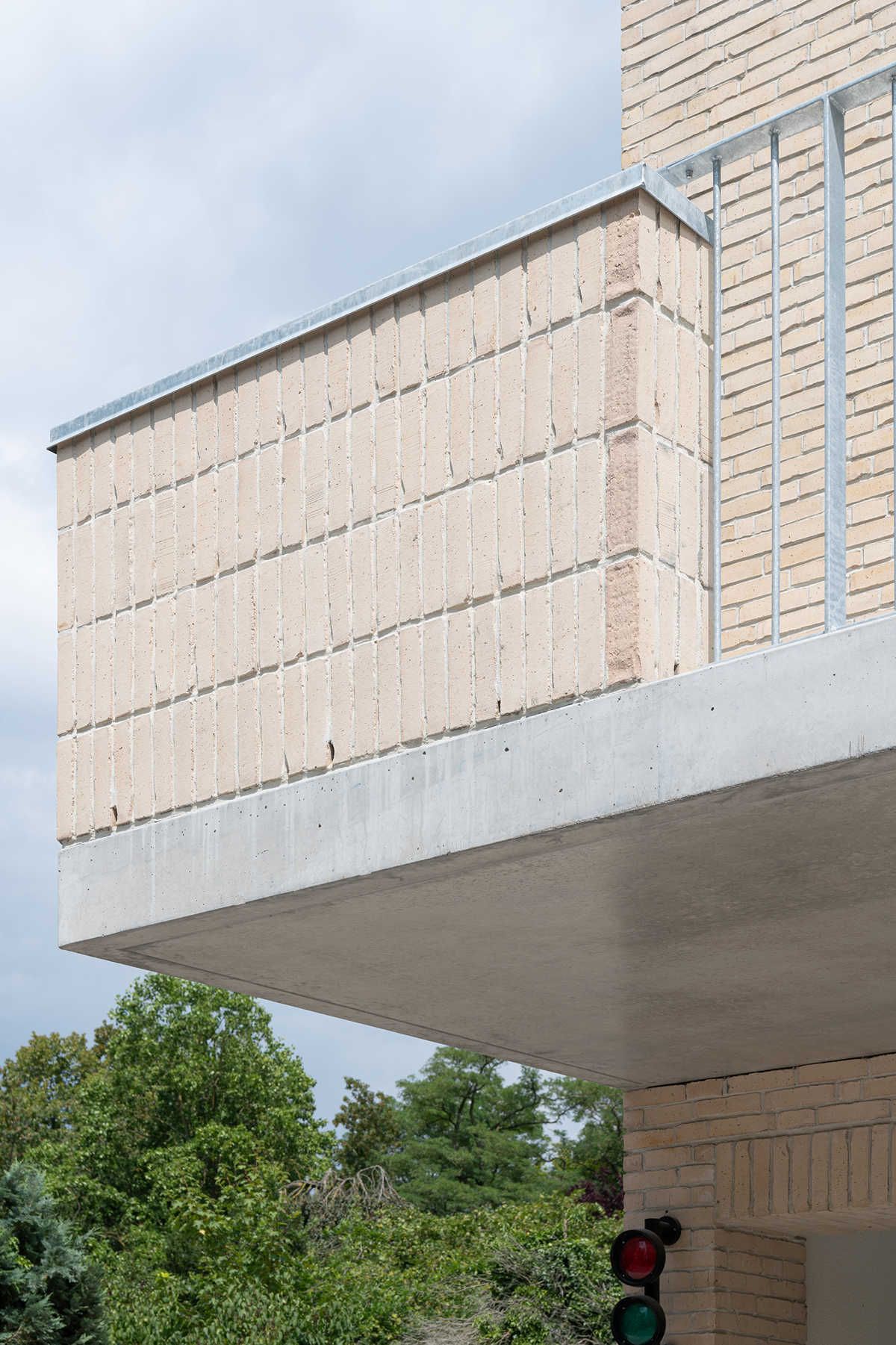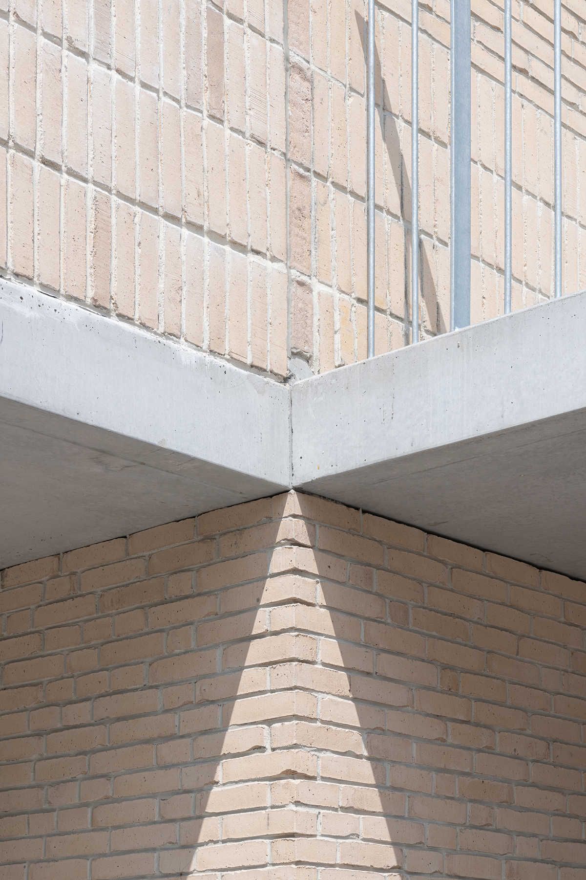 Jasna cegła klinkierowa nadaje elewacji lekkości i spójności z otoczeniem, tworząc harmonijne przejście między nową zabudową a istniejącą tkanką miejską. Powtarzalny rytm dużych przeszkleń i balkonów podkreśla horyzontalny charakter bryły oraz zapewnia optymalne doświetlenie wnętrz. Naturalna kolorystyka cegły zapewnia trwałość estetyczną i odporność na działanie warunków atmosferycznych, jednocześnie wpisując się w kontekst sąsiedniej zabudowy. Projekt stanowi przykład nowoczesnej architektury ceglanej, w której materiał elewacyjny pełni zarówno funkcję użytkową, jak i kompozycyjną.