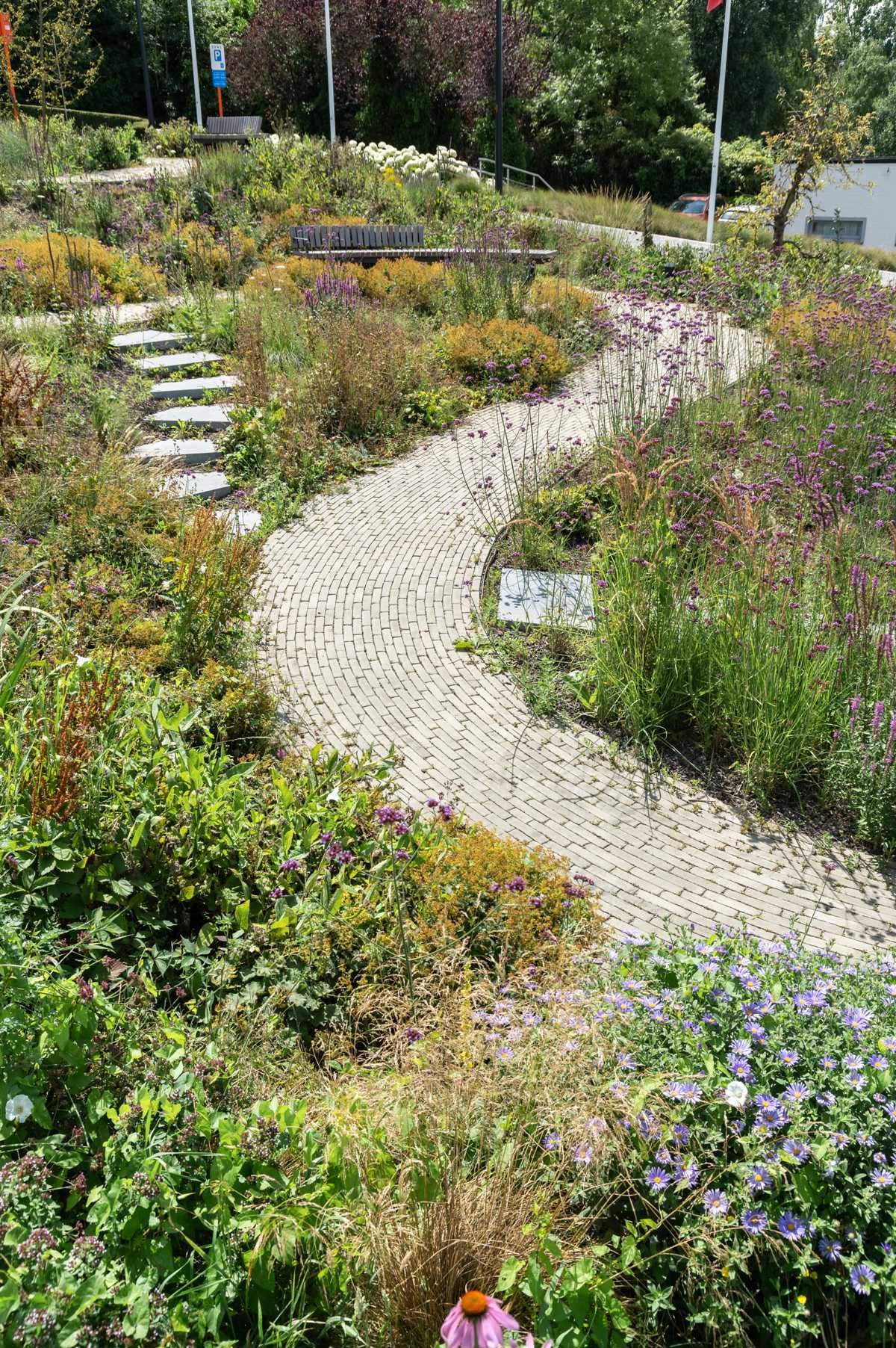 W tej realizacji krajobraz miejski przenika się z naturą, tworząc przestrzeń przeznaczoną do odpoczynku, spacerów i swobodnego spędzania czasu. Kręte ścieżki z jasnej cegły prowadzą użytkowników przez bogatą roślinność, która zmienia charakter miejsca wraz z porami roku. Subtelne ławki, otwarte polany oraz swobodne nasadzenia budują atmosferę naturalnego ogrodu w centrum miasta. Całość została zaprojektowana tak, by przywrócić równowagę między zabudową a naturą oraz stworzyć przyjazną przestrzeń dla mieszkańców i odwiedzających.