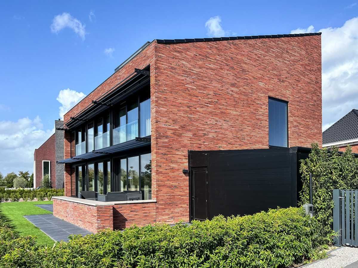 Budynek harmonijnie wpisuje się w zielone, spokojne otoczenie, tworząc spójną relację między architekturą a krajobrazem. Duże przeszklenia otwierają wnętrza na ogród i naturalne światło, zapewniając poczucie przestrzeni i komfortu. Całość tworzy nowoczesną, spokojną strefę mieszkalną, w której architektura staje się naturalnym przedłużeniem otaczającej przyrody.