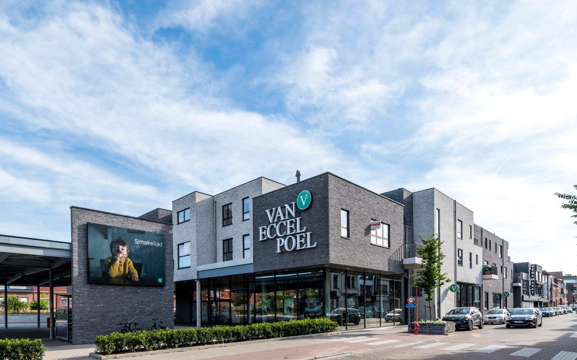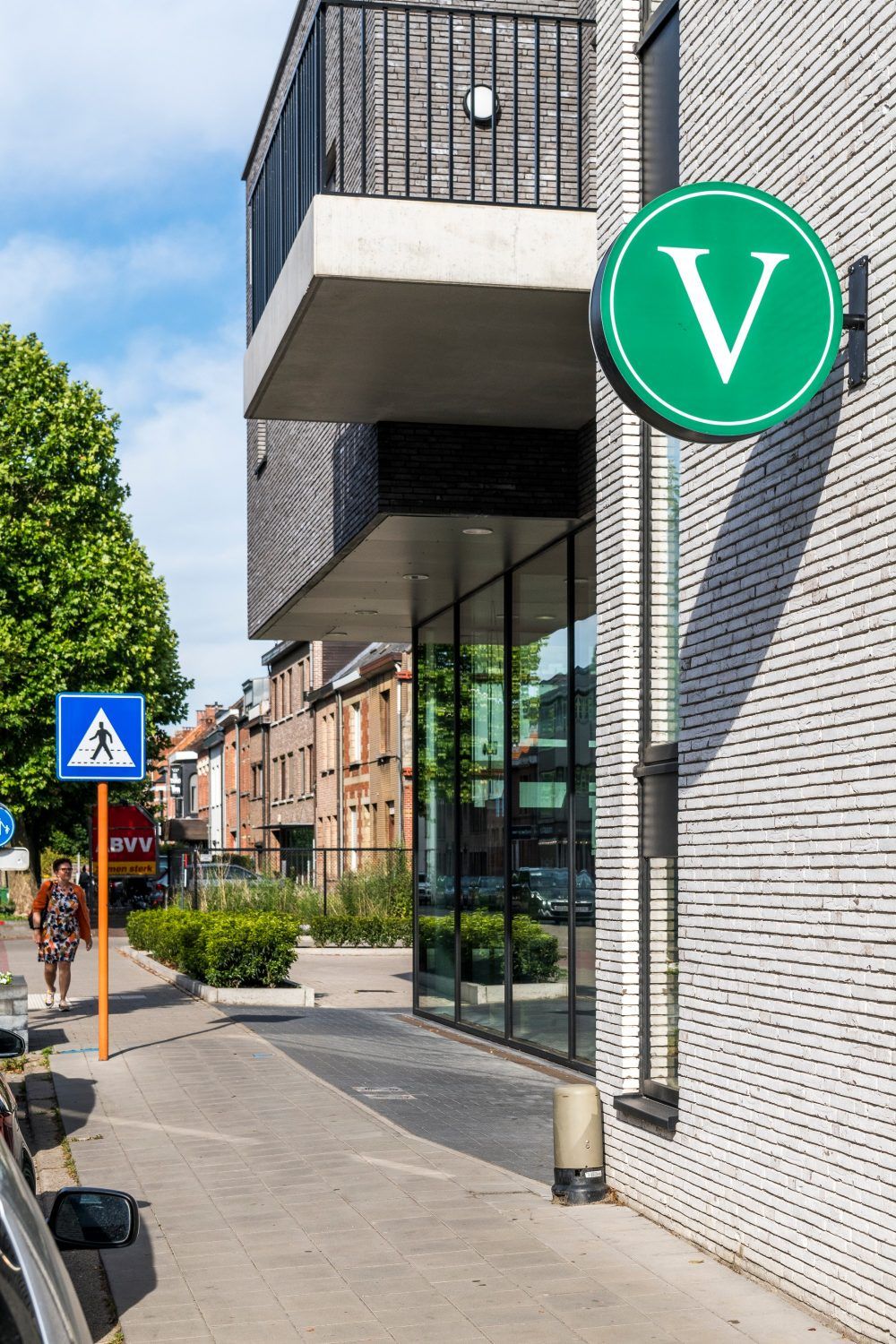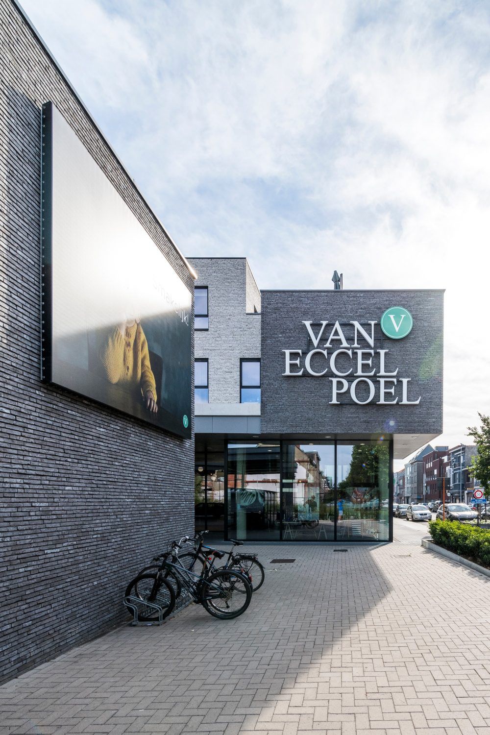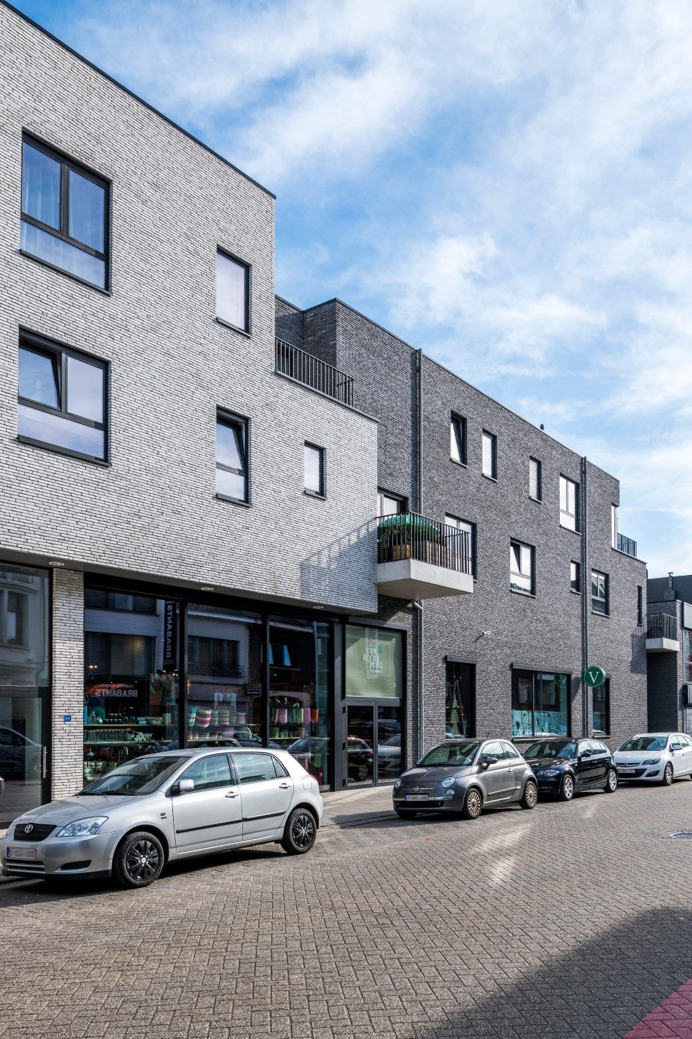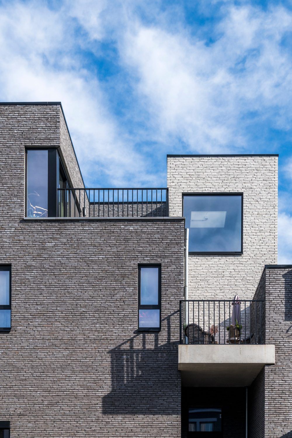 Elewacja z cegły klinkierowej w dwóch odcieniach podkreśla nowoczesny charakter miejskiej zabudowy