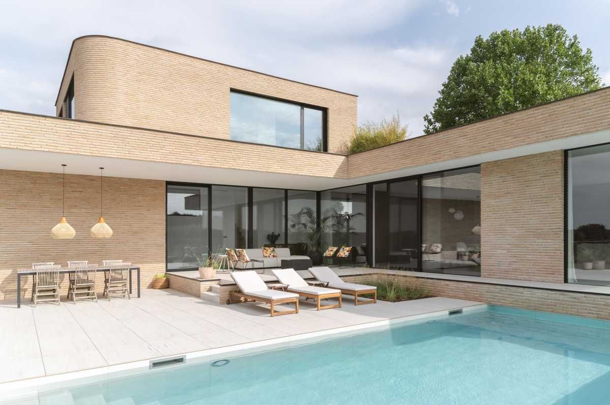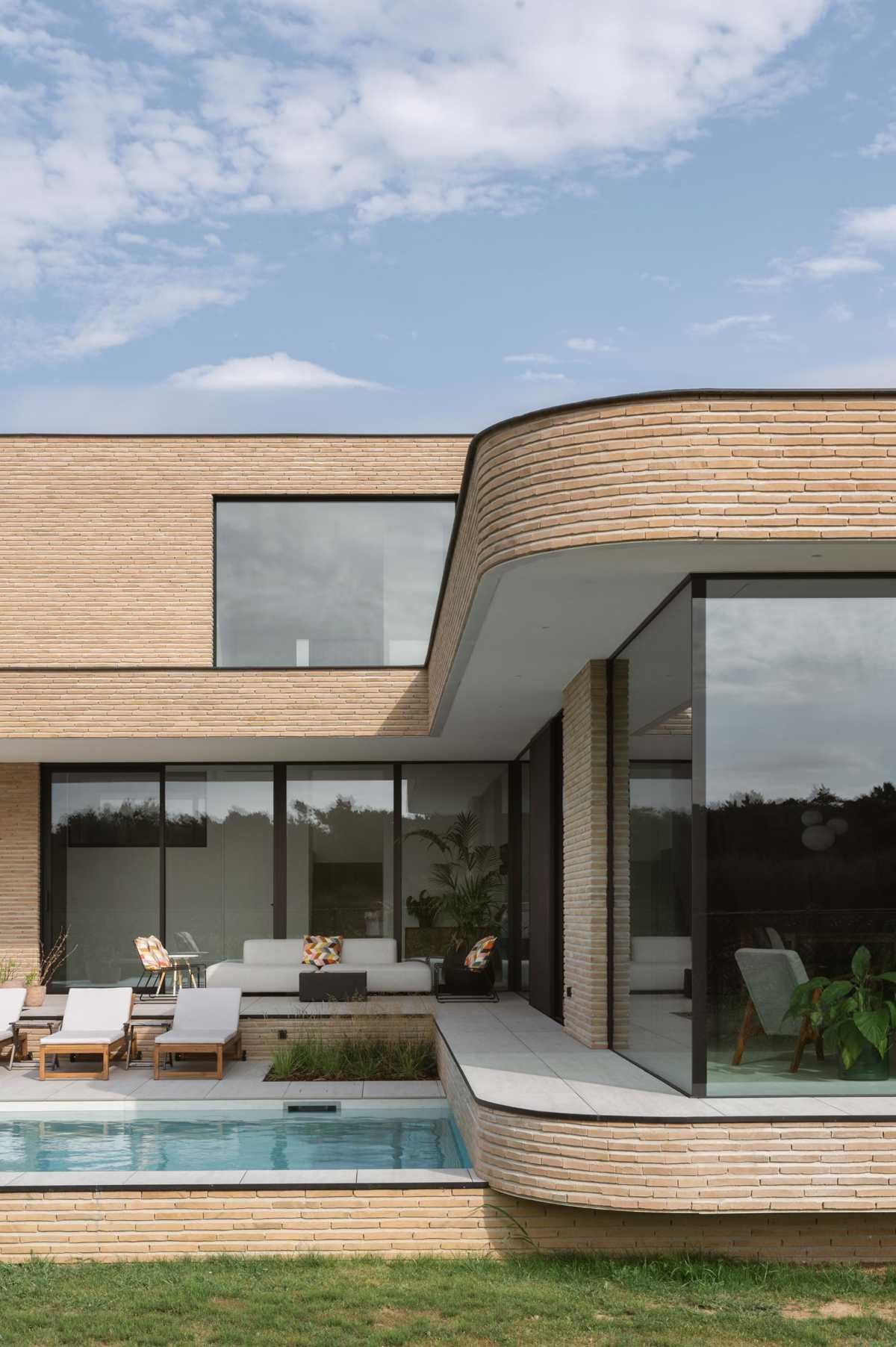 Nowoczesny dom jednorodzinny, w którym cegła klinkierowa w jasnej, piaskowej tonacji buduje harmonijną i ponadczasową bryłę. Zaokrąglone narożniki, horyzontalne linie elewacji oraz duże przeszklenia tworzą architekturę otwartą na ogród i światło. Projekt łączy minimalistyczną estetykę z naturalnym charakterem materiałów, podkreślając komfort życia i elegancję współczesnej zabudowy.