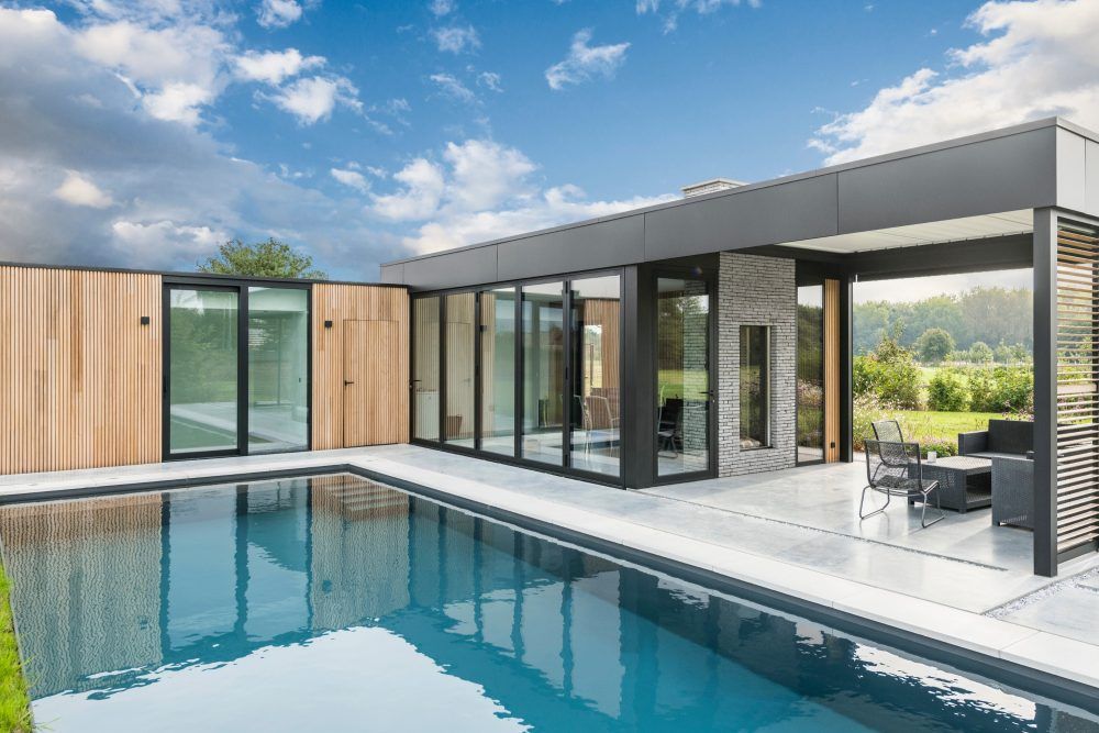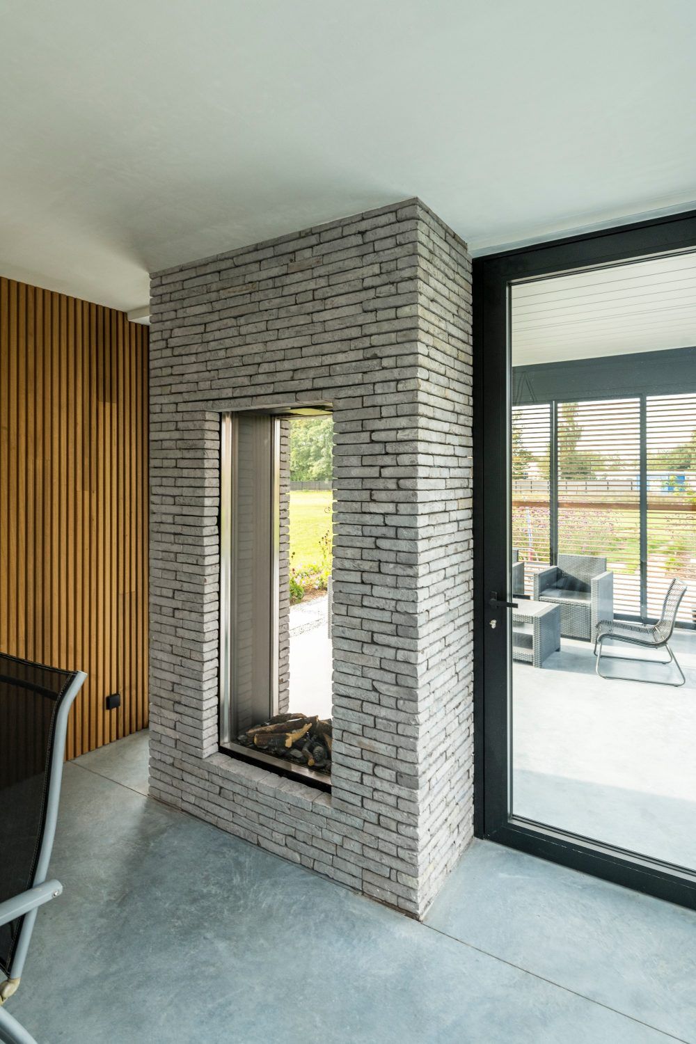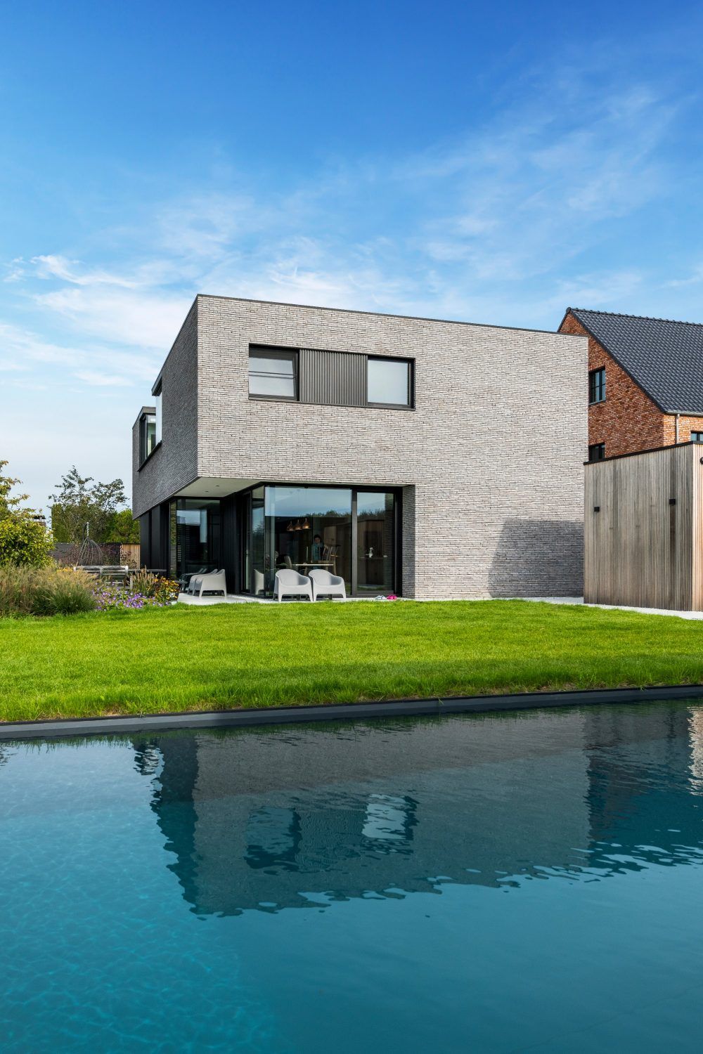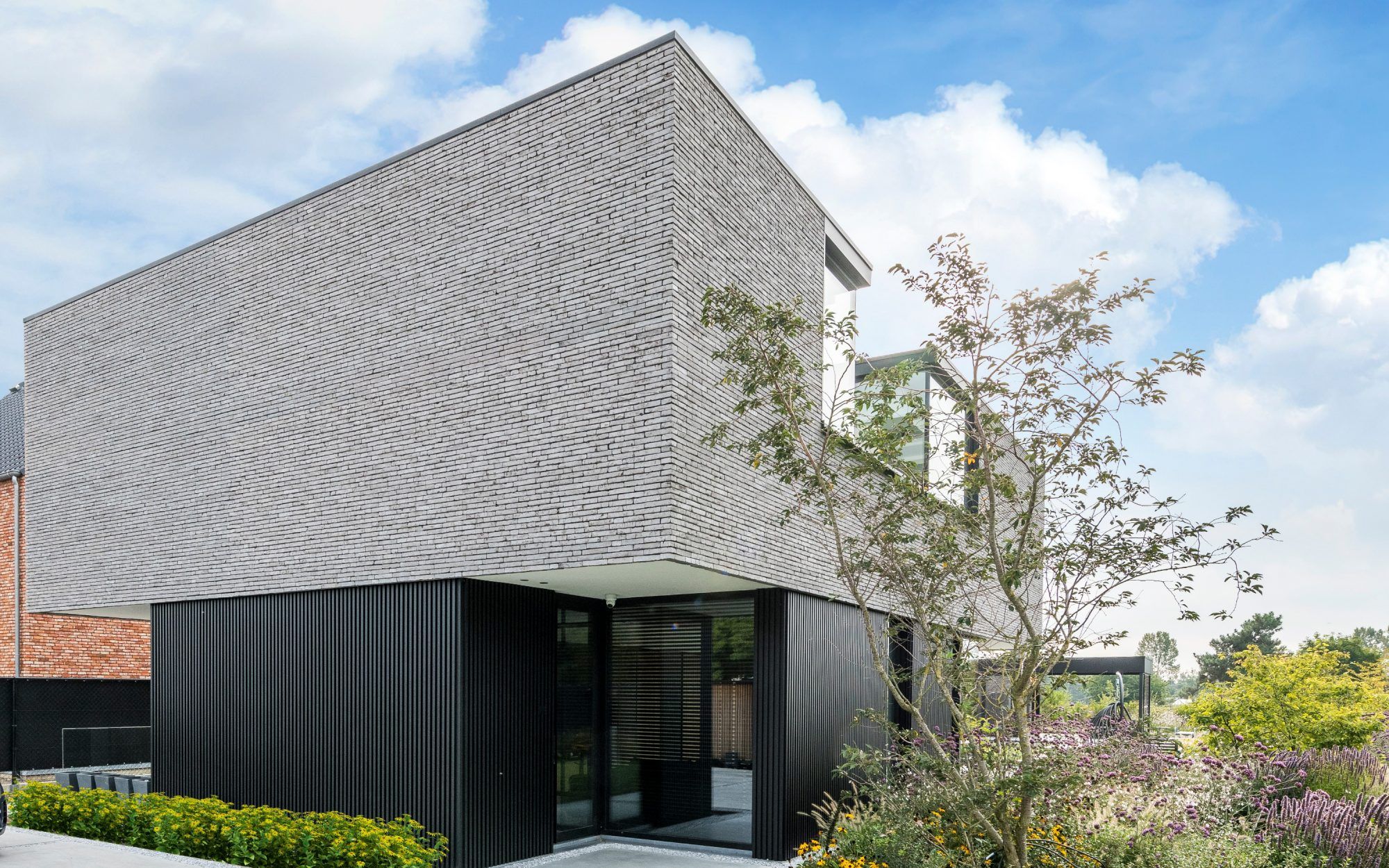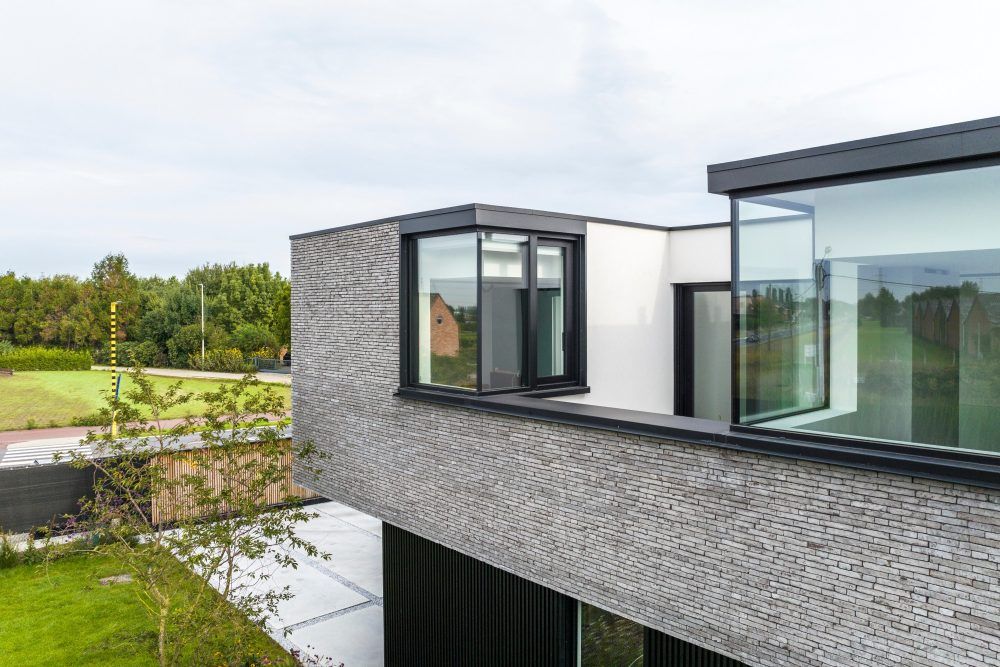 Jasnoszara cegła klinkierowa podkreśla minimalistyczną formę domu i elegancką nowoczesność architektury