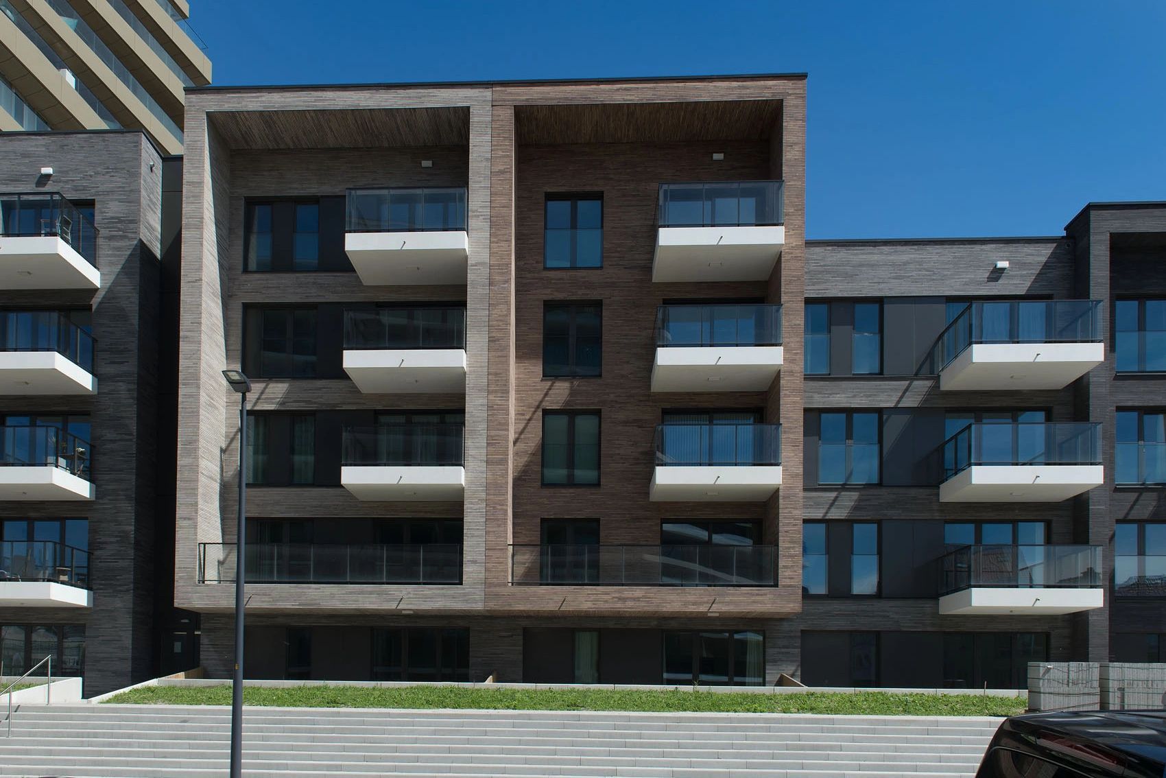 Subtelna architektura oparta na horyzontalnym układzie klinkieru.