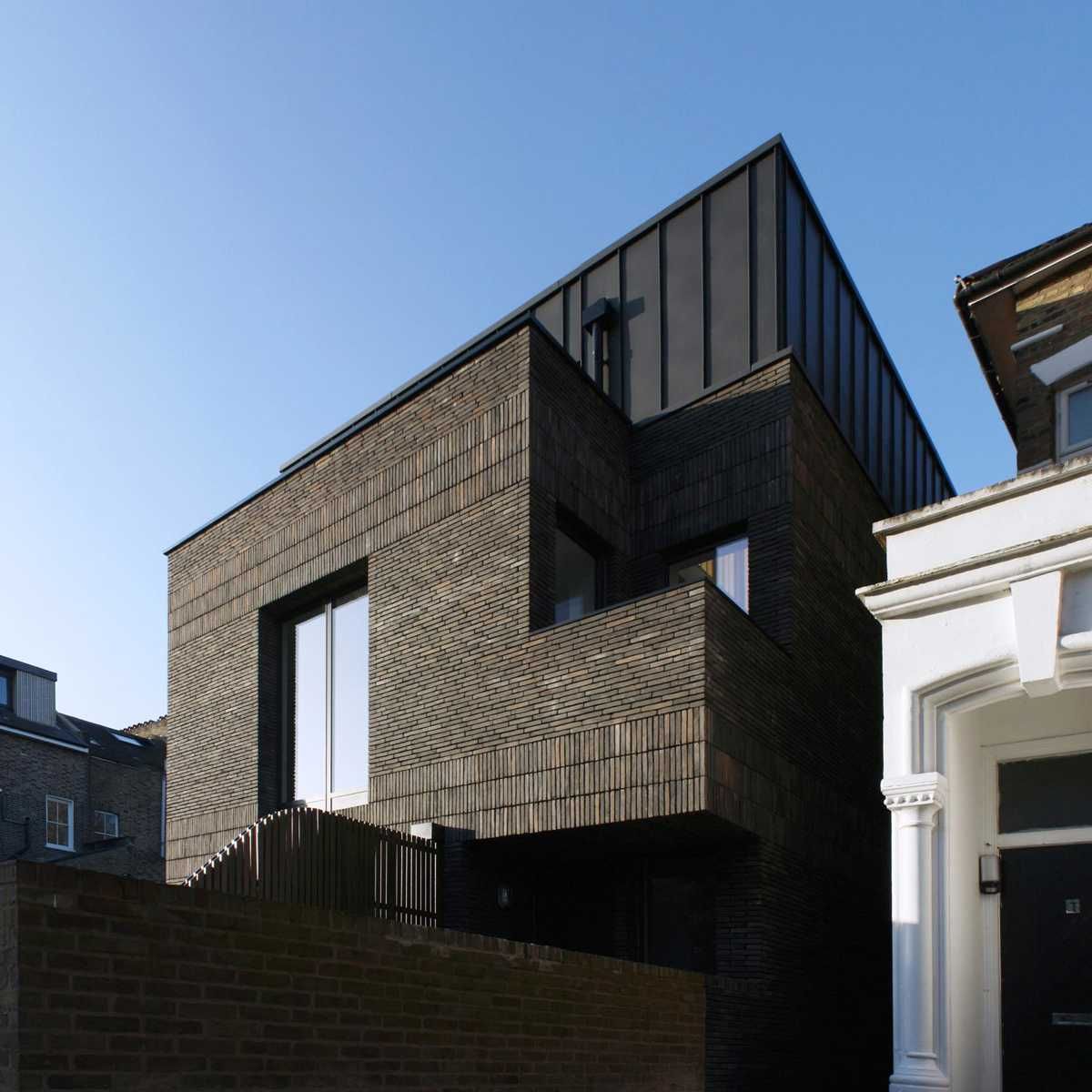 Elewacja z ciemnej cegły klinkierowej nadaje budynkowi nowoczesny, wyrazisty charakter i doskonale wpisuje się w estetykę współczesnej architektury. Wąskowymiarowa cegła układana w poziomych pasach tworzy trójwymiarową strukturę, która pięknie pracuje ze światłem, podkreślając geometrię bryły i jej dynamiczne proporcje. To przykład nowoczesnej elewacji z cegły, która łączy trwałość, odporność na warunki atmosferyczne oraz elegancki, ponadczasowy wygląd. Dzięki dużym przeszkleniom i precyzyjnemu detalowi cała fasada zyskuje lekkość, pozostając jednocześnie mocnym akcentem w miejskim krajobrazie.