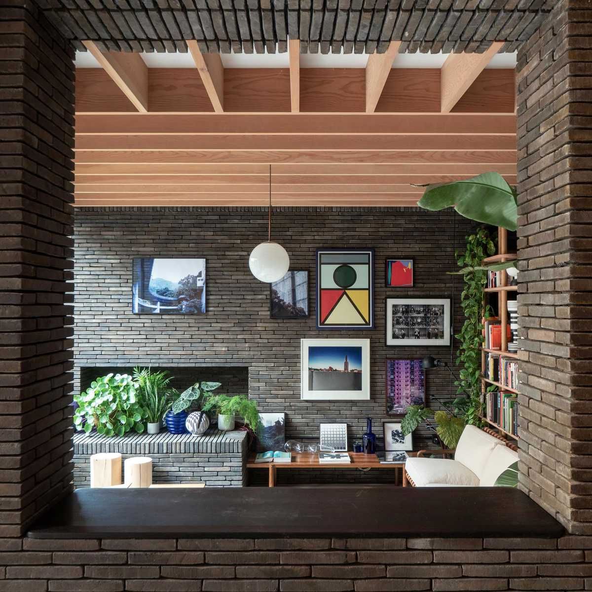 Przestrzeń ta łączy nowoczesny minimalizm z ciepłem ręcznie formowanej cegły. To miejsce, w którym codzienność spotyka się z artystyczną ekspresją.